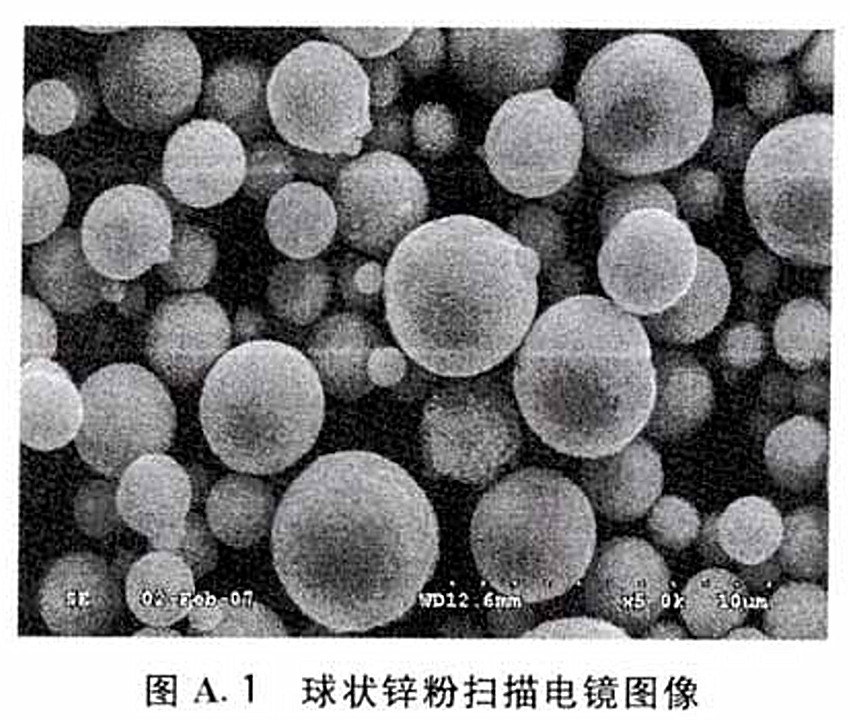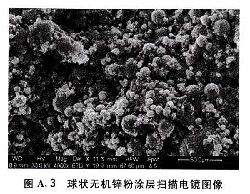 圖A.3 球狀無機(jī)鋅粉涂層掃描電鏡圖像