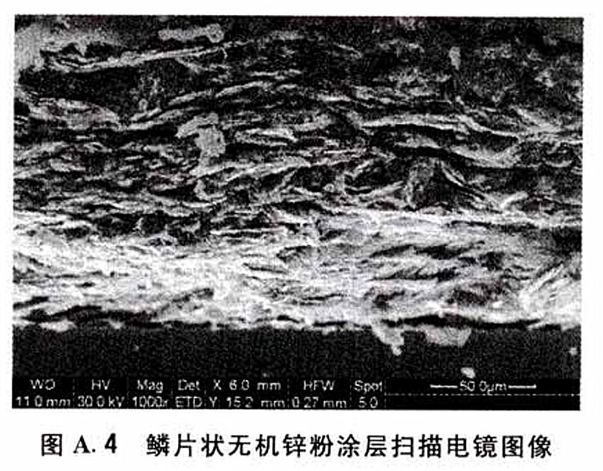 圖A.4 鱗片狀無機(jī)鋅粉涂層掃描電鏡圖像