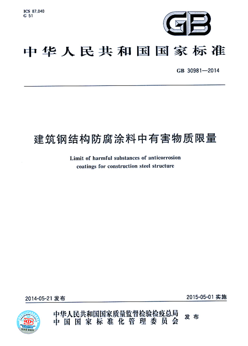 建筑鋼結構防腐涂料中有害物質限量標準GB 30981-2014 ICS87.040 G51 GB 中華人民共和國國家標準 GB 30981-2014 建筑鋼結構防腐涂料中有害物質限量 Limit of harmful substances of anticorrosion coatings for construction steel structure 2014-05-21發布 2015-05
