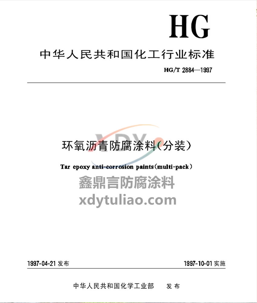 環(huán)氧瀝青防腐涂料(分裝)標(biāo)準(zhǔn)HG/T2884-1997:本標(biāo)準(zhǔn)規(guī)定了環(huán)氧瀝青防腐涂料(分裝)產(chǎn)品的要求、試驗(yàn)方法及標(biāo)志、標(biāo)簽、包裝。本標(biāo)準(zhǔn)適用于以環(huán)氧樹脂、煤焦瀝青為漆基,加入顏料、體質(zhì)顏料、溶劑、助劑及固化劑而制成的雙組份環(huán)氧瀝青漆底、面漆配套的防腐涂料(包括普通型和厚膜型兩類)。該涂料主要用于水下及地下鋼結(jié)構(gòu)的重防腐涂裝。