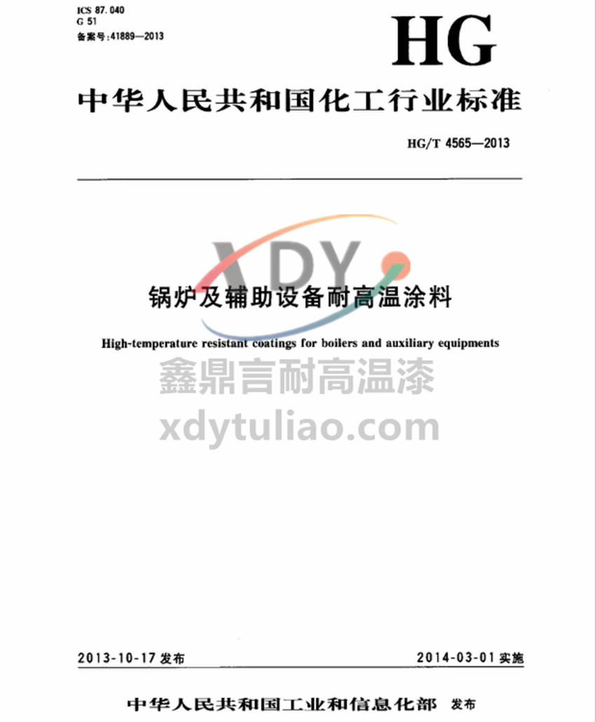 鍋爐及輔助設備耐高溫涂料標準HG/T4565-2013