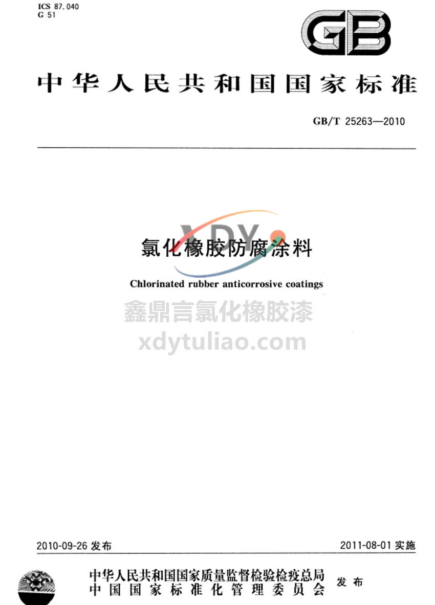 氯化橡膠防腐涂料國家標(biāo)準(zhǔn)GB/T 25263-2010