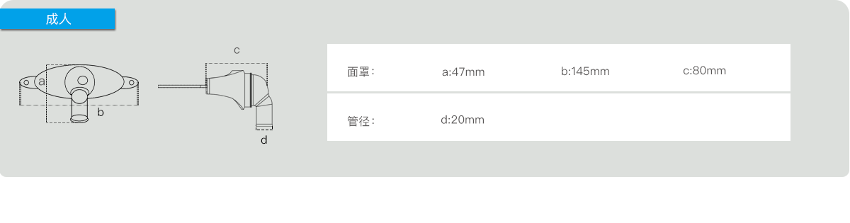 2. 產(chǎn)品由氣管切開(kāi)面罩、圓蓋、彎管接頭組成。
