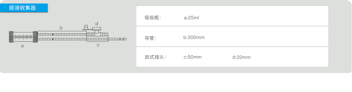 2.產(chǎn)品由專(zhuān)用吸引接頭、吸痰管路、痰液收集容器組成,獨(dú)立包裝。