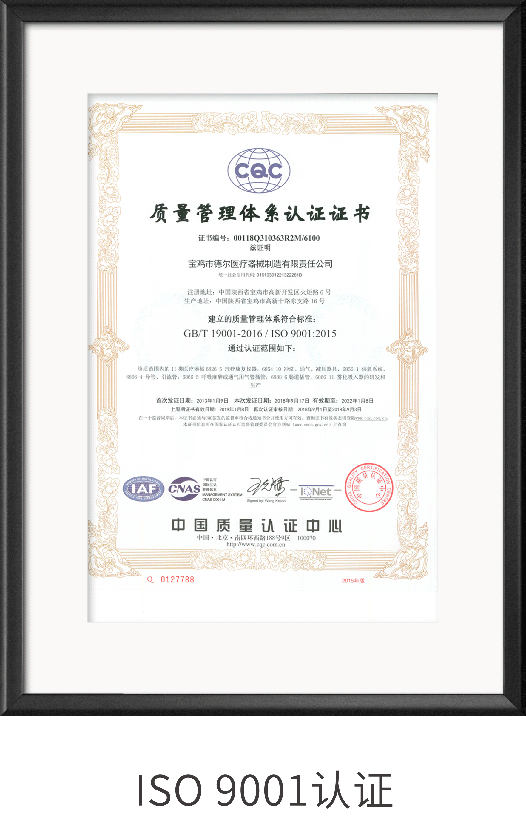 德爾醫(yī)械,創(chuàng)立于1996年,是專業(yè)從事吸引治療、氧治療、呼吸治療、重癥監(jiān)護(hù)領(lǐng)域醫(yī)療器械的研發(fā)與生產(chǎn)、推廣與教育的綜合性企業(yè)。總部位于中國寶雞,另有北京研發(fā)中心,是國家高新技術(shù)企業(yè)、國家級(jí)規(guī)模以上工業(yè)企業(yè)。擁有ISO9001認(rèn)證、ISO13485認(rèn)證、歐盟CE認(rèn)證,22項(xiàng)實(shí)用新型專利、3項(xiàng)外觀設(shè)計(jì)專利等。因德爾醫(yī)械進(jìn)入市場早、質(zhì)量好、種類齊全等優(yōu)勢(shì),深受數(shù)萬家醫(yī)院的青睞。