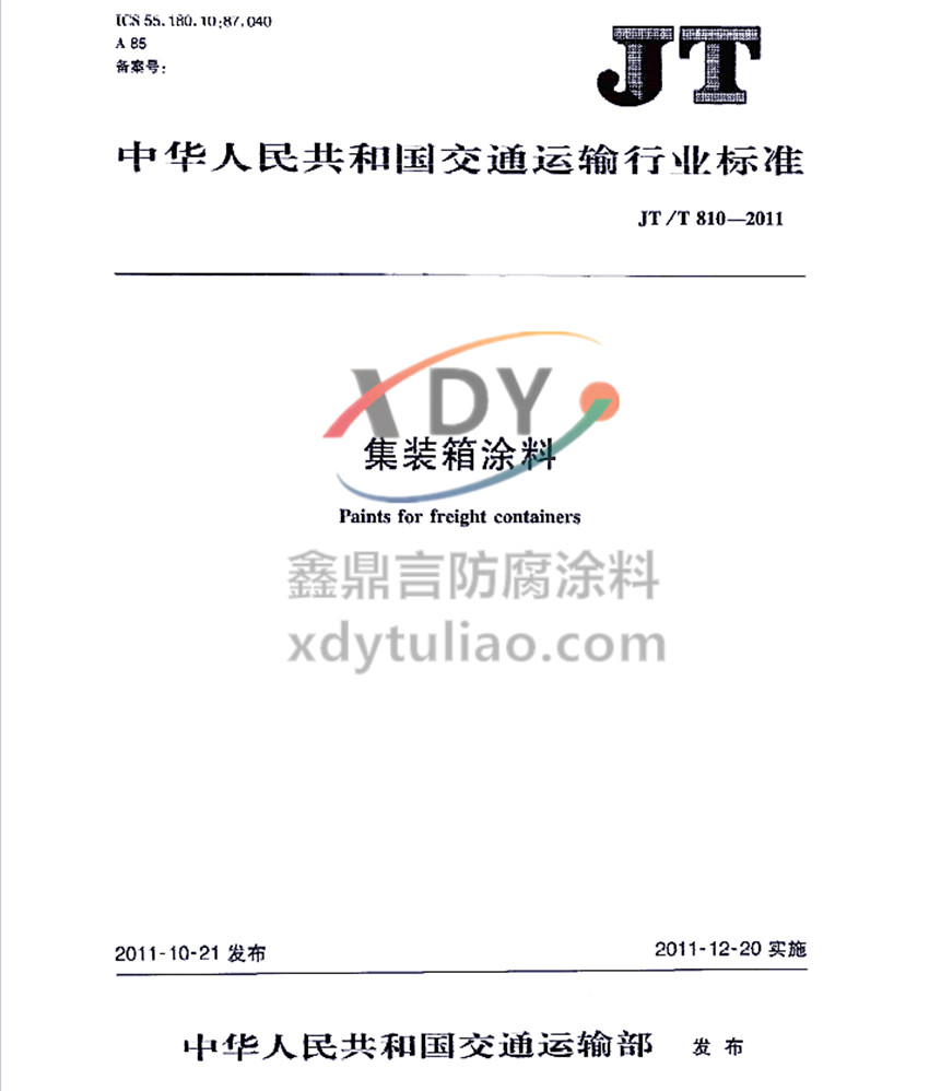 集裝箱涂料交通運輸行業標準JT/T 810-2011