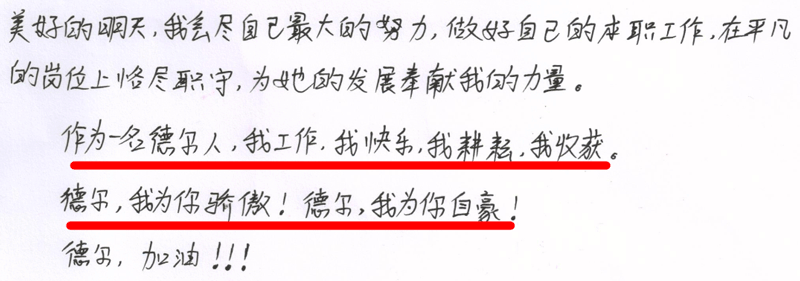 我是2011年的7月28號正式成為我們德爾的一員。初來乍到的日子,過得有苦有甜。“80后”,一個很耳熟、也很新潮的名詞。我是一名“80后”。初入社會,干過銷售、跑過業(yè)務(wù),但都沒有堅持多久。都說“80后”吃不了苦,受不了累,以前的我大概就是這個樣子吧。在進入公司后,遇到的人和事物讓我改變了很多。感覺自己學(xué)到最好的東西應(yīng)該是“堅持”!